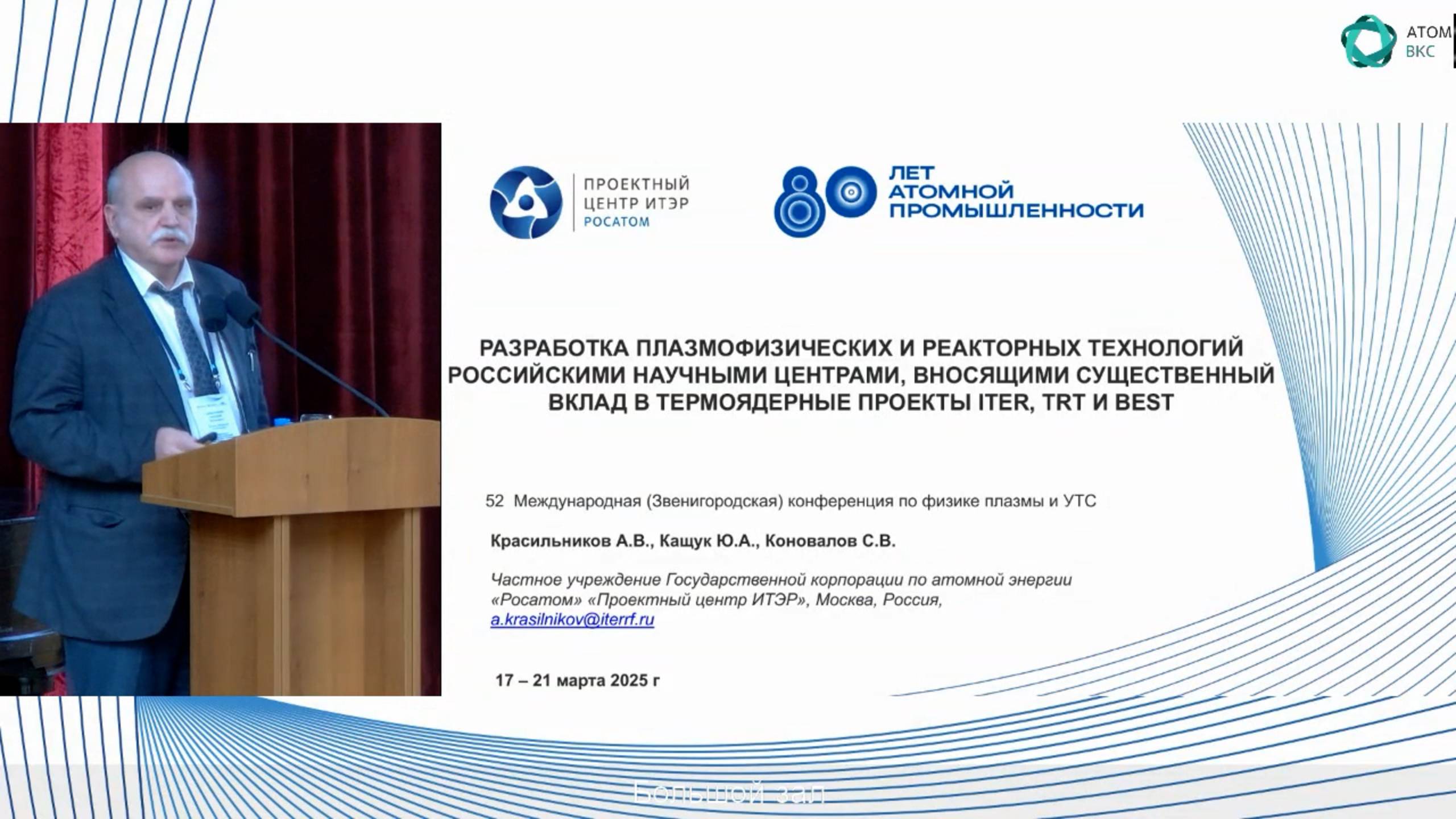 Разработка плазмофизических и реакторных технологий российскими научными центрами, вносящими существенный вклад в термоядерные проекты ITER, TRT и BEST. Красильников А.В., Кащук Ю.А., Коновалов С.В. (Частное учреждение Государственной корпорации по атомной энергии "Росатом" "Проектный центр ИТЭР", Москва, Россия) НАУЧНО-ДЕЛОВОЙ ПОРТАЛ «АТОМНАЯ ЭНЕРГИЯ 2.0» https://www.atomic-energy.ru СОЦИАЛЬНЫЕ СЕТИ Новости в Telegram: https://t.me/Nuclear_Energy_Russia Атомный чат в Telegram: https://t.me/Open_Nuclear_Chat Сообщество ВКонтакте: https://vk.com/AtomicEnergyRu Дзен Блог: https://dzen.ru/atomic-energy.ru Видеоканал Rutube: https://rutube.ru/channel/24721138/ Видеоканал Youtube: https://www.youtube.com/c/AtomicEnergyRu О ПРОЕКТЕ https://www.atomic-energy.ru/about СОТРУДНИЧЕСТВО И РЕКЛАМА https://www.atomic-energy.ru/partnership
