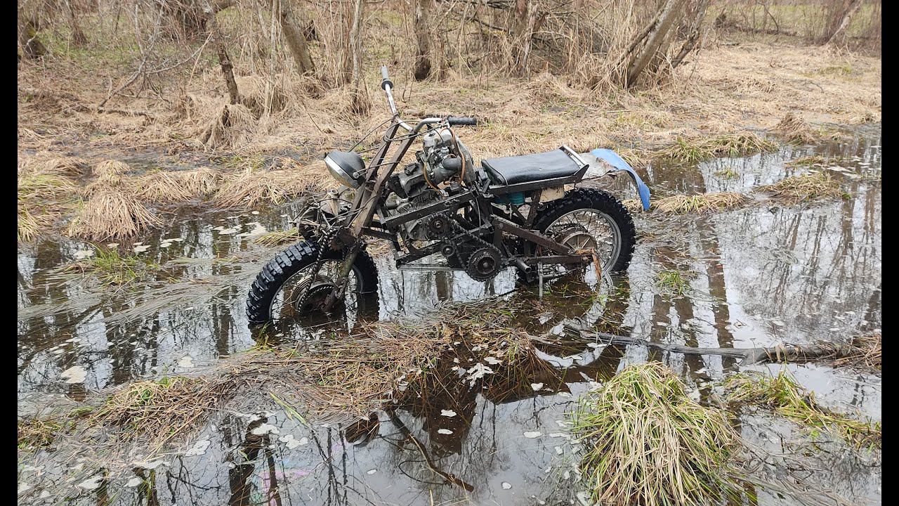 Полноприводный мотоцикл с двигателем от бензопилы урал на болоте