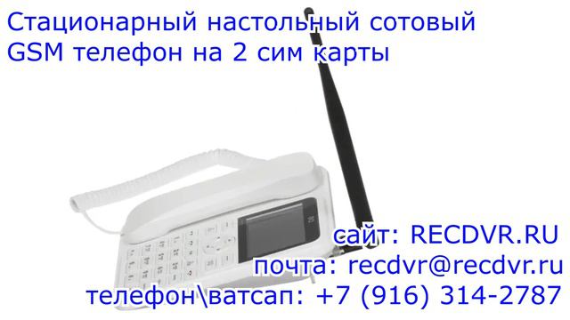 https://recdvr.ru/product/belyj-nastolnyj-sotovyj-gsm-telefon-na-2-sim-karty/ - Стационарный настольный сотовый телефон на 2 сим карты с доставкой по Москве и всей России. Наш телефон в Москве: +7 (916) 314 2787. Стационарный сотовый телефон с корпусом белого цвета в плане использования соответствует проводному телефону, но является портативным благодаря использованию для голосовых вызовов и передачи сообщений GSM-сетей. В нем предусмотрены слоты для размещения 2 сим карт. Аппарат можно разместить на рабочем столе или на стенном креплении. Для вывода номера, информации о вызове и других данных телефон располагает 2.8 дюймовым дисплеем. Настольный мобильный девайс располагает наружной антенной для более стабильного подключения к сети. Среди полезных функций устройства предусмотрены FM-радио, диктофон, будильник, календарь, калькулятор. Технические характеристики Цвет: белый Рабочий диапазон: GSM 850 (B5), GSM 900 (B8), GSM 1800 (B3), GSM 1900 (B2) Количество SIM-карт: 2 Тип SIM-карты: Mini-SIM (25x15x0.76 мм) Диагональ дисплея (дюйм): 2.8″ Разрешение экрана: 320×240 Материал корпуса: пластик Настенное крепление: есть Разъем для наушников: есть Повторный набор номера: есть Режим громкой связи: есть Прием и отправка SMS: есть Регулятор уровня громкости звонка Память набранных номеров: есть Поддержка Bluetooth: есть Питание: от аккумулятора или от розетки через адаптер Емкость аккумулятора: 1700 мАч Параметры питания: 100-240 В/50-60 Гц Тип разъема зарядки: micro USB FM-радио: есть Диктофон: есть Органайзер: будильник, календарь, калькулятор Поддержка карт памяти MicroSD до 32 ГБ