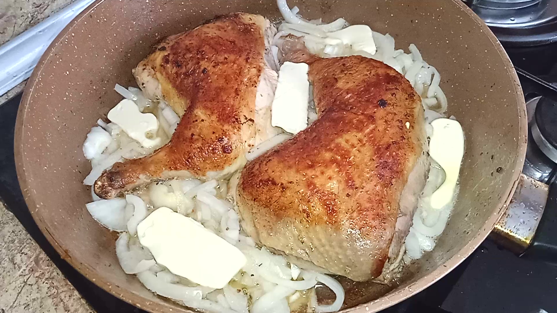 МАРИНОВАННАЯ КУРИЦА С ЛУКОМ И СЛИВОЧНЫМ МАСЛОМ НА СКОВОРОДЕ. БЫСТРЫЙ РЕЦЕПТ ВКУСНОГО УЖИНА.