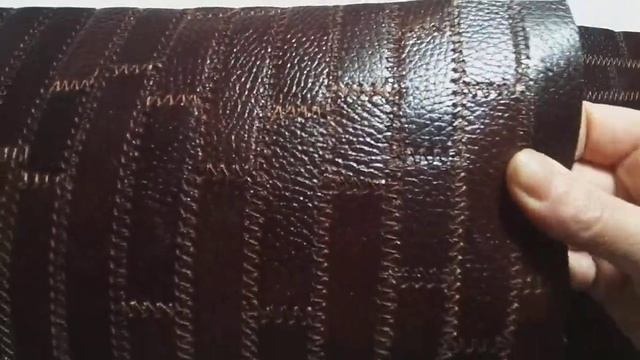 Сборка основы кожаной сумки из маленьких кусочков. Переработка остатков кожи..