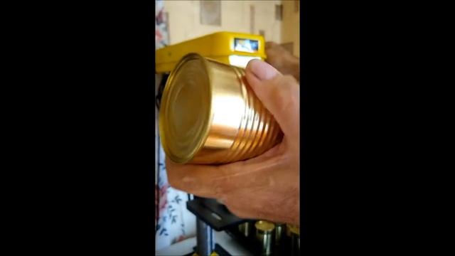 Закатка жестяных банок на самодельной приспособе.