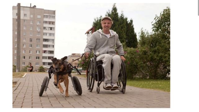 Мужчина на инвалидной коляске с собакой