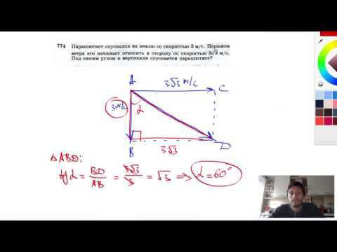 №774. Парашютист спускался на землю со скоростью 3 м/с. Порывом ветра его начинает относить в сторону со скоростью 3√3 м/с. Под каким углом к вертикали спускается парашютист? Мой второй канал для подготовки к ЕГЭ и ОГЭ - https://www.youtube.com/ЕвгенийСумин Инстаграм - https://www.instagram.com/EGE_OGE.math Личный инстаграм - https://www.instagram.com/ee_sumin VK - https://vk.com/evgeniysumin FB - https://www.facebook.com/EvgeniySumin
