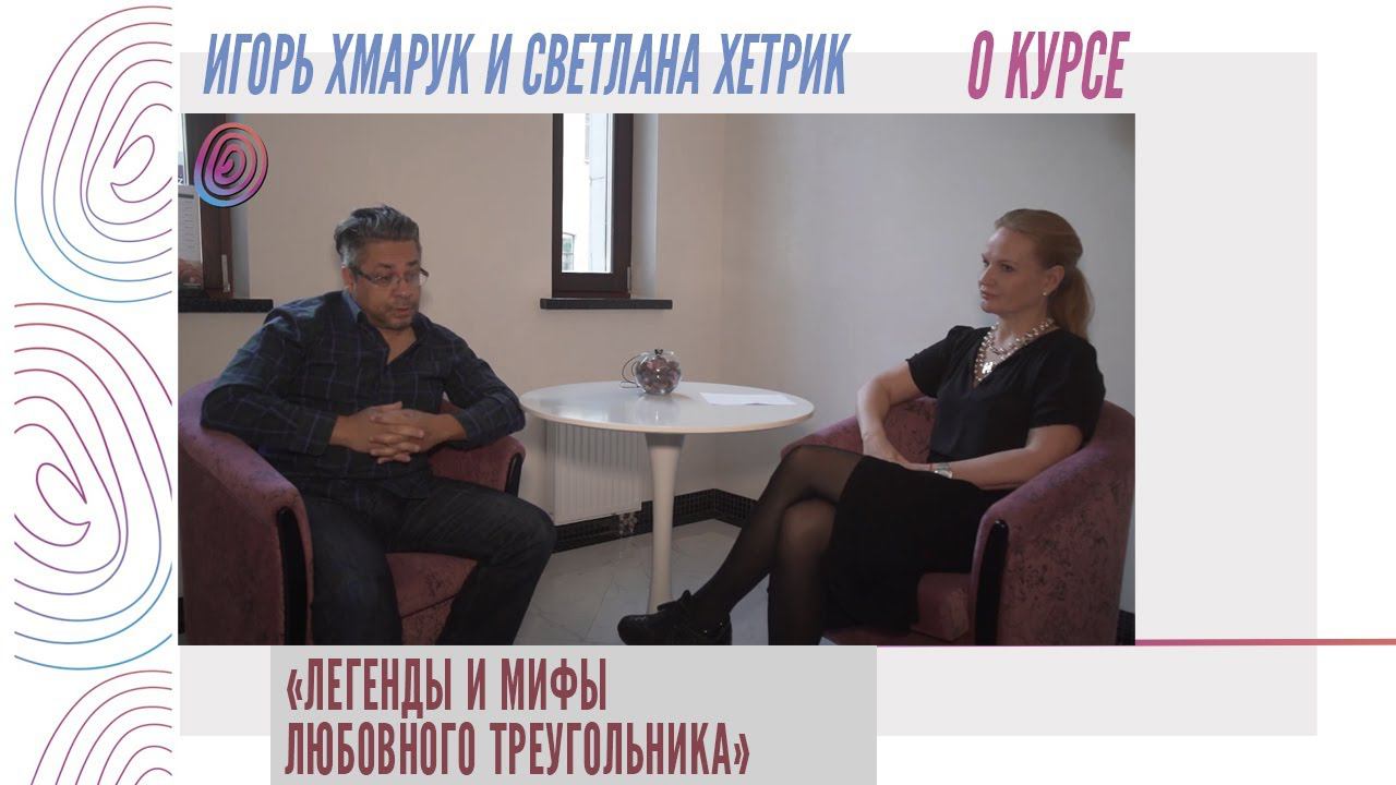 Игорь Хмарук и Светлана Хетрик о курсе «Легенды и мифы любовного треугольника» Ассоциация Специалистов в области Клинического Гипноза (АСОКГ) https://clinicalhypnosis.ru/ Наш сайт: https://psy.education/ Facebook: https://www.facebook.com/www.psy.education/ ВКонтакте: https://vk.com/psy.education.work.market Электронная почта: info@psy.education Телефон: +7 (911) 277-77-69