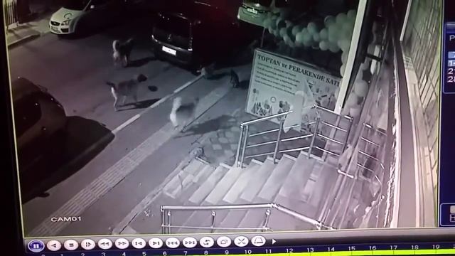 Кот разогнал стаю бродячих собак....