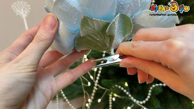 332093 Украшение декоративное Мак с эффектом инея на прищепке голубой 15см