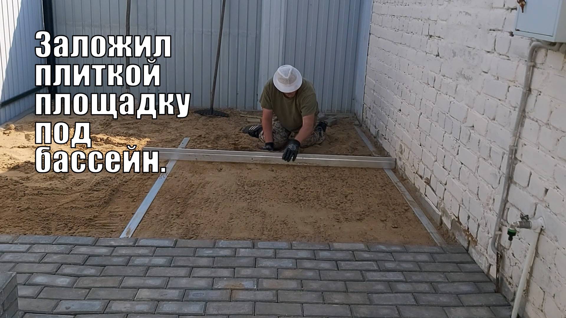 Заложил плиткой площадку под бассейн