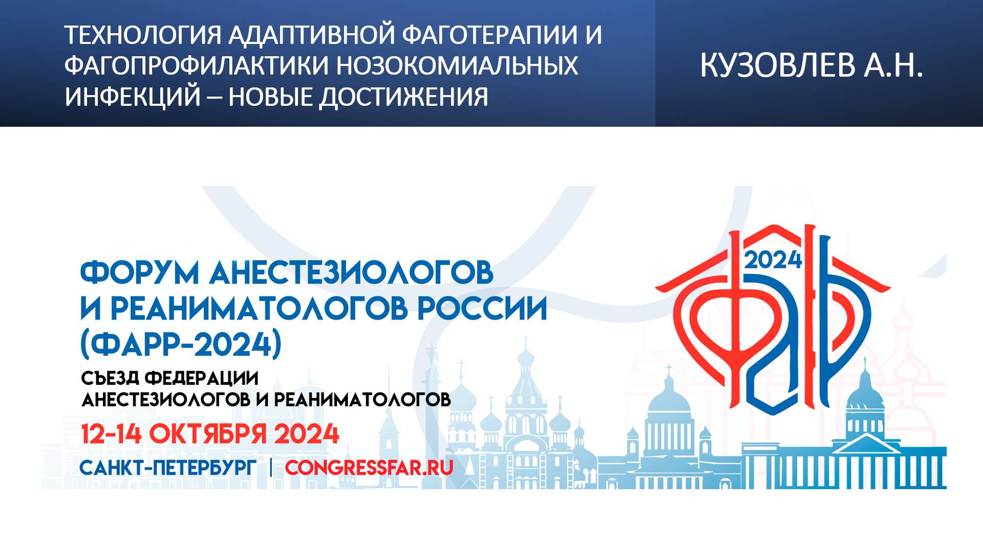 Видеозапись ФАРР-2024, XXII съезд Федерации анестезиологов и реаниматологов 12-14 октября 2024, Санкт-Петербург. Артем Николаевич Кузовлев "Технология адаптивной фаготерапии и фагопрофилактики нозокомиальных инфекций – новые достижения" Информация, размещенная на канале, предназначена исключительно для медицинских специалистов