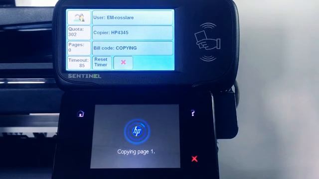 Learn more about Sentinel secure printing systems http://www.epapersign.com Seen here is a Hewlett Packard LaserJet Pro MFP M521dn, with Sentinel print server software and pull-printing release station (touch controller). With Sentinel secure printing software and external touch controller, making copies with RFID employee cards on HP MFPs is easier than ever. e-Paper Sentinel secure pull printing can be used with any printer make and model, either by using Sentinel embedded secure printing software or through the use of a Sentinel external touch controller, such as the one in the video above. Sentinel secure print server software can be used to manage you entire print infrastructure centrally, providing print security and print server stability for any type of organization and printing environment. Load-balancing and fail-over are available to ensure high availability. Multiple sites may be configured and managed centrally, and clustering is also supported. End users can now print in the same quick and easy manner regardless whether they are in their office or visiting a branch in another country - they just authenticate at the nearest printer, select their job, and their printout appears in seconds.