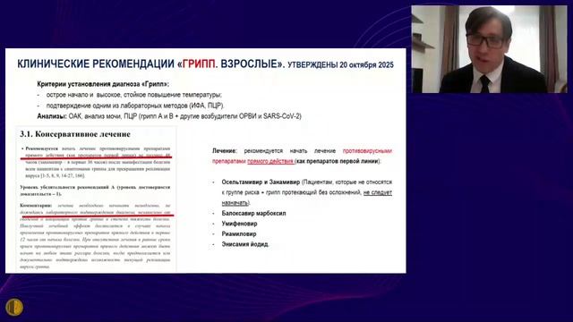 11.03.2026 Заседание Высшей Школы Терапии МГНОТ Адекватная и своевременная противовирусная терапия – это рациональный выбор Поляков Дмитрий Викторович, доцент кафедры пропедевтики внутренних болезней №1 ИКМ ФГАОУ ВО РНИМУ им. Н.И. Пирогова Минздрава России (Пироговский университет).