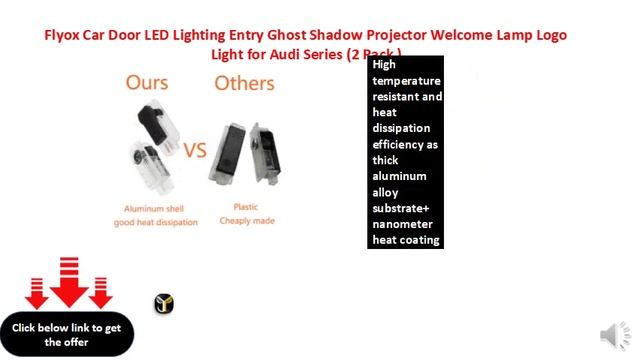 https://www.amazon.in/Flyox-Lighting-Shadow-Projector-Welcome/dp/B01LWP7JIP/ref=sr_1_85?tag=jpstorenkl-21 100% Brand new, Cree LED pure white, Voltage:12V with 1800L; No drilling, no wiring, . Easy to install,It will only take you about 5 minutes. High temperature resistant and heat dissipation efficiency as thick aluminum alloy substrate+ nanometer heat coating High Definition and Bright Projection.Using high brightness LED chip,Very bright lighting output,Very low power consumption. https://www.amazon.in/Flyox-Lighting-Shadow-Projector-Welcome/dp/B01LWP7JIP/ref=sr_1_85?tag=jpstorenkl-21