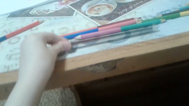 Я показала мои цветные карандаши, там красный фиолетовый чёрный и розовый