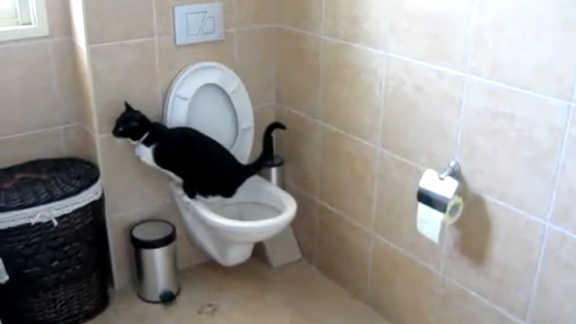 Кот ходит в унитаз