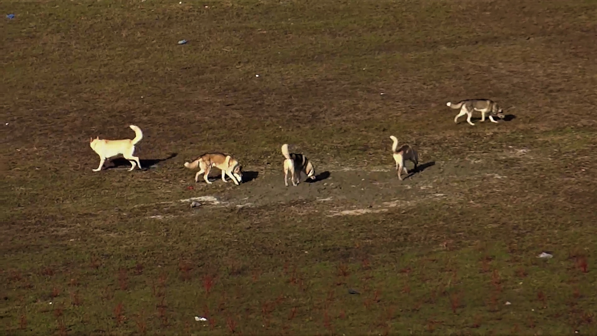 Выгул больших собак в большом городе - огромная проблема. Но эти пять весёлых хаски нашли простор для раздолья!
