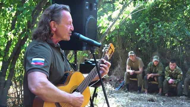 Автор-исполнитель, поэт и прозаик, председатель клуба авторской песни ДНР. Автор слов неофициального гимна ЛНР и ДНР «Донбасс за нами» Владимир Скобцов выступил перед бойцами.