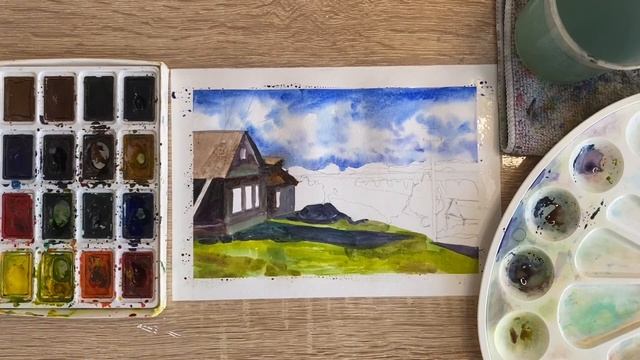 Как нарисовать посёлок карандашом и акварелью начинающим | Рисунок для детей