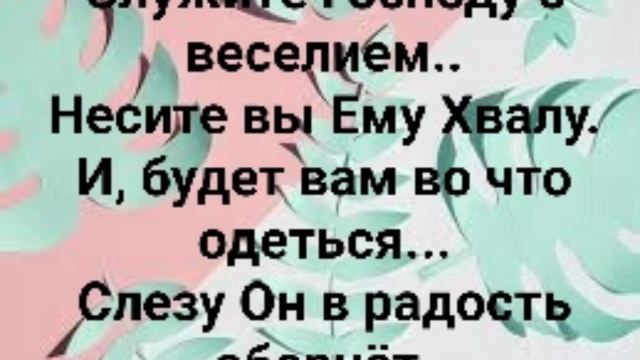 ХРИСТИАНСКИЕ ПЕСНИ ДЛЯ ХВАЛЫ И ПОКЛОНЕНИЯ ПРОСЛАВЛЕНИЯ ВООДУШЕВЛЕНИЯ ЕВАНГЕЛИЗАЦИИ #господь#музыка#христианская_музыка#музика#христианскиепесни#бог#христианскиестихи#любовь#христианство#стихи#песня#песни#иисус#иисусхристос#иисусмойбог#иисус_христос#иисусбог#иисусгосподь#хвалы_и_поклонения#хваление#хвала#прославление#духсвятой#духовныйрост#духовноепробуждение#духовность "СЛУЖИТЕ ГОСПОДУ С ВЕСЕЛИЕМ!" СЛОВА, МУЗЫКА: ЖАННА ВОЛКОВА-ВАРЛАМОВА https://stihi.ru/avtor... Стихи Жанна Волкова-Варламова https://stihi.ru/2024/... Служите Господу с веселием... Ликуйте...Несите вы Ему Хвалу. Один Господь достоин Славы... Ведь, Он даёт и день и ночь. Припев: Хвалите Господа и пойте... Несите Божию Любовь. Никто не знает то, что будет завтра... И, будет ли тот завтра день?! Служите Господу с веселием.. Несите вы Ему Хвалу. И, будет вам во что одеться... Слезу Он в радость обернёт. Припев: Хвалите Господа и пойте... Несите Божию Любовь. Никто не знает то, что будет завтра... И, будет ли тот завтра день?! Служите Господу с веселием.. Несите вы Ему Хвалу. И, будет вам во что одеться... Слезу Он в радость обернёт. Припев: Хвалите Господа и пойте... Несите Божию Любовь. Никто не знает то, что будет завтра... И, будет ли тот завтра день?! Служите Господу с веселием... Несите вы добро Его. И, Бог даст мир и долголетие. Покроет грех Его Любовь. Припев: Хвалите Господа и пойте... Несите Божию Любовь. Никто не знает то, что будет завтра... И, будет ли тот завтра день?! 15.11.2024 Жанна Волкова-Варламова