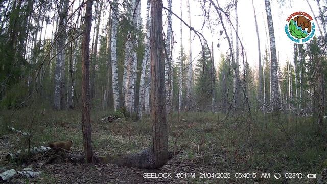 21.04.2025.Лесная куница.Заповедник Большая Кокшага.Ловкий зверек лезет на дерево в поисках пищи