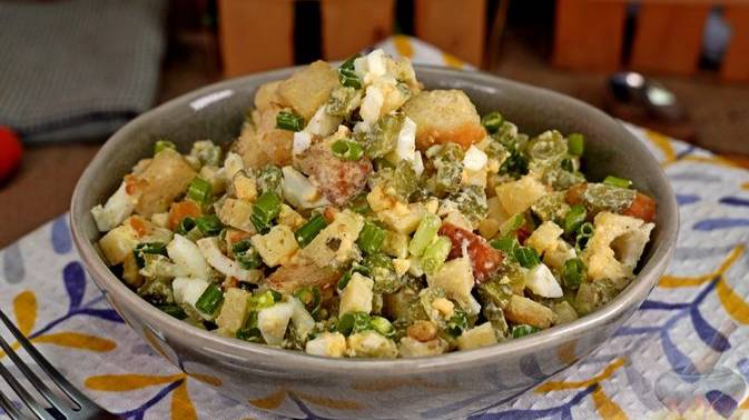 Быстрый, вкусный, элементарный в приготовлении салат с маринованными огурцами, сыром и яйцами. Домашние сухарики для салата, приготовленные с добавлением чеснока, придают блюду аппетитный аромат. #Салат #ПростойСалат #СалатСОгурцами #СалатССухариками #НаПраздничныйСтол