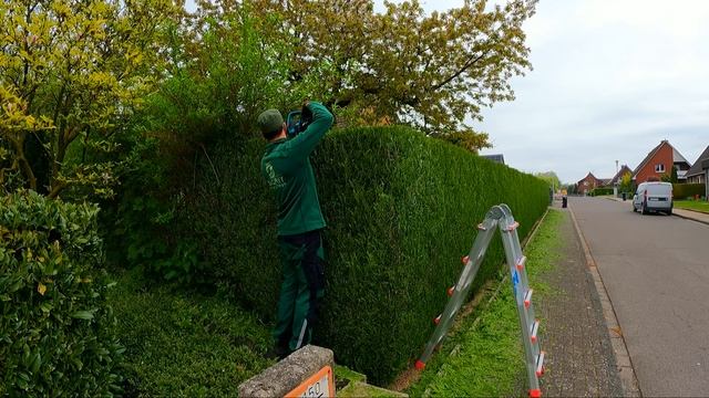 Я выбрал солнечный день, чтобы подстричь изгородь из туи. Хозяин попросил меня стричь изгородь как можно ровнее, так как раньше он стриг её сам. Изгородь была высотой почти 2 метра и длиной около 20 метров, и я планировал выполнить работу за два часа. Всё шло по плану, за исключением того, что робот-газонокосилка въехал в мою камеру и немного повредил объектив, но я заметил это уже после окончания работы. Хозяин остался очень доволен моей работой и сам решил сдуть всё с тротуара. 11.05.2023