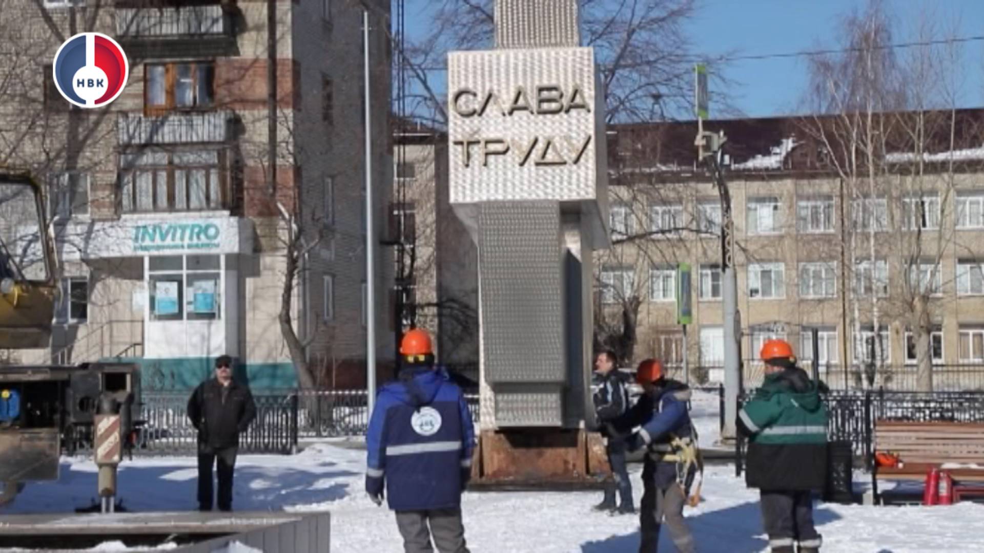 Демонтаж скульптурной композиции «Слава труду»