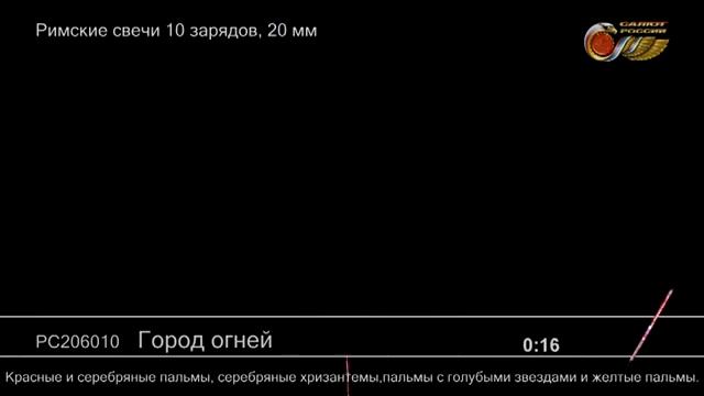 РС206010 Город огней римская свеча 10 зарядов высотой 20м калибром 0,8 дюйма