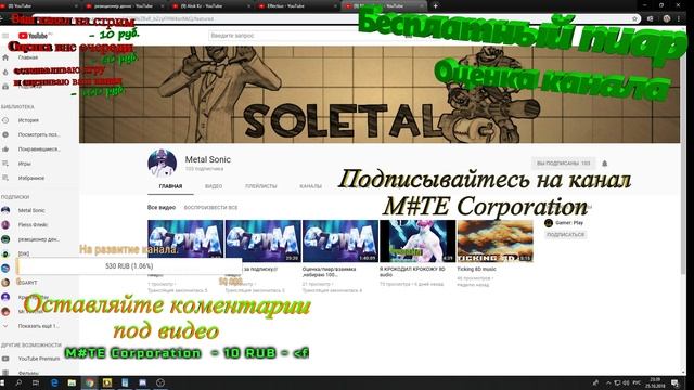Размещение вашего канала в видео на сутки 10 рублей. - в описании доната пишите только название вашего канала. ► Спасибо за донат! Озвучка доната от 10 рублей◄ http://www.donationalerts.ru/r/foxar Спасибо за то что зашел на мой канал!!!!! Буду благодарен подписке и лайку!!! Ссылка на Disord канал: https://discord.gg/47zFm3N Моя конфигурация ПК: Процессор Intel Core i5-7600K Материнская плата MSI Z270 GAMING M3 Видеокарта Palit GeForce GTX 1080 Кулер для процессора Zalman 9900 MAX Оперативная память Kingston HyperX FURY 16 ГБ 1 ТБ Жесткий диск WD Blue [WD10EZRZ] (3 штуки в рейд масиве) 240 ГБ SSD-накопитель Corsair Force LS (для игр) 250 ГБ SSD M.2 накопитель Samsung 960 EVO (под систему и программы) Блок питания Aerocool KCAS 750W Внутренняя звуковая карта Creative Sound Blaster ZXR Корпус Zalman Z9 U3 черный Дополнительно Изогнутый монитор Samsung на 27 дюймов Клавиатура A4Tech Bloody B318 Мышь A4Tech Bloody R7 Наушники A4Tech Bloody G500 черный Микрофон Audio-technica ATR4697 #продвижение #развитие #пиар #трансляция #интересное #раскрутка #начало #рождение #подписка #лайк #взаимная_подписка #игры #стрим #прохождение #ностальгия #вместе #оценка #канала #общение #взгляды #обучение #учусь #онлайн #стример #PUBG #games