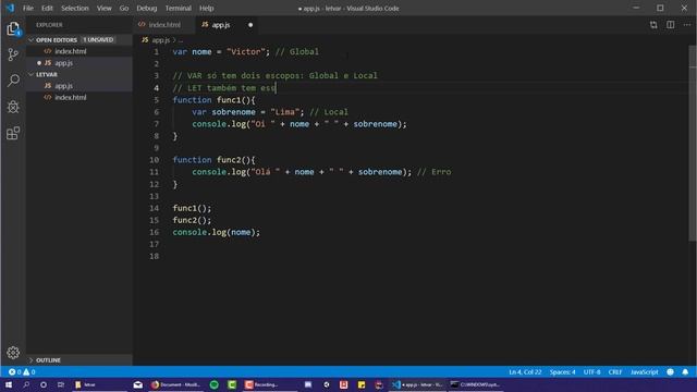 Quando a EcmaScript6(ES6) foi lançada, a linguagem Javascript recebeu muitas novidades, uma delas foi a implementação da palavra let, que por sua vez tem a mesma finalidade da var, ou seja, armazenar informações. Mas a grande questão que é: Qual é a diferença entre var e let no Javascript? Em resumo, a grande diferença entre declarar variáveis com var e let, está resumida a escopo. Com a chegada do ES6 em 2015, o escopo de bloco foi implementado na declaração de variáveis let. Para entender o que é escopo, e qual a diferença entre var e let no Javascript, veja o vídeo. #javascript
