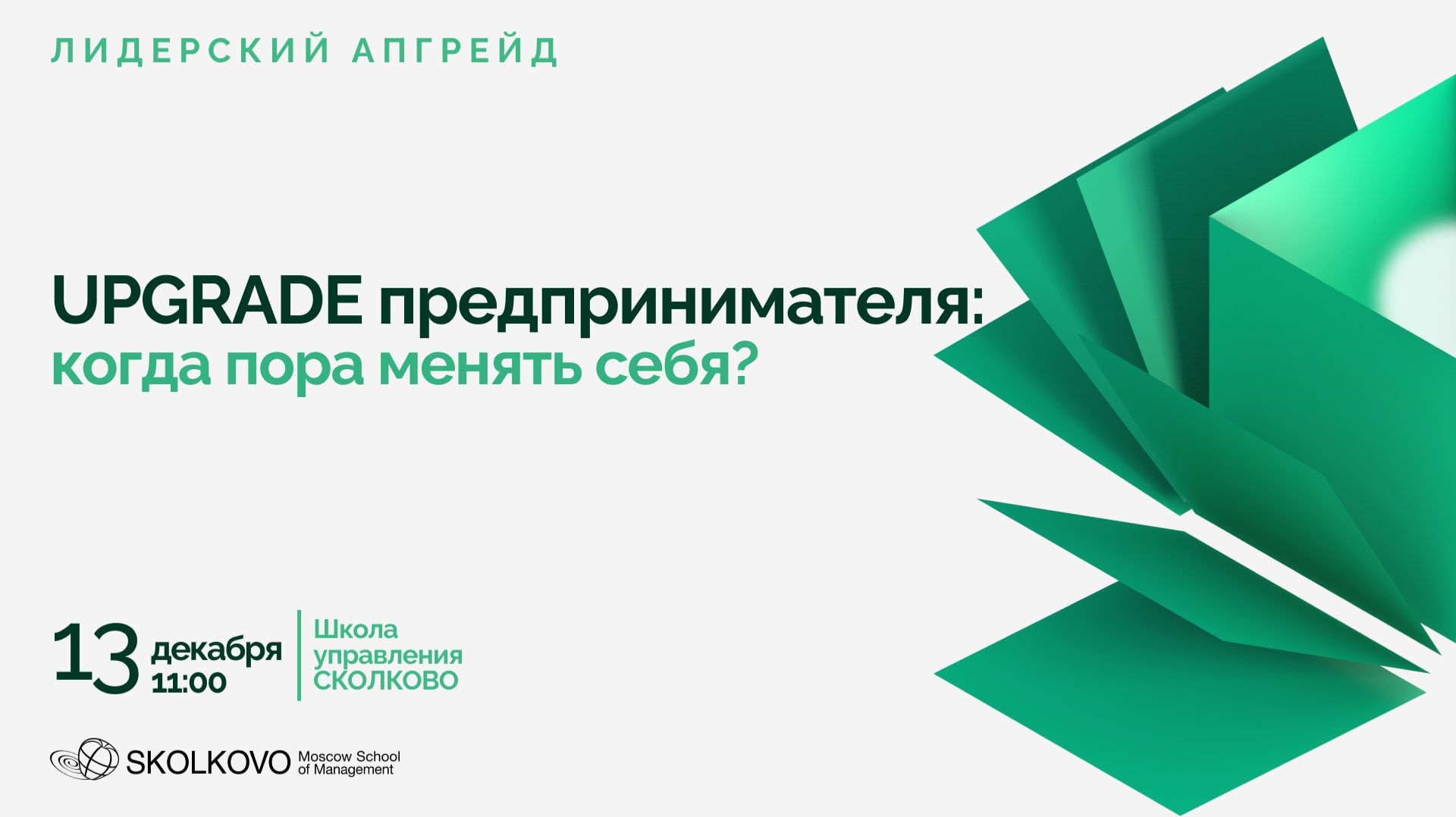 Сегодняшняя реальность требует от собственника больше, чем просто адаптации. Инструменты устаревают быстрее, чем их успевают внедрить. Команды теряют фокус, бизнес буксует, и даже привычные рычаги управления перестают работать. В этом состоянии многие продолжают действовать «по инерции»: пытаются масштабировать старую модель, не меняя ключевого элемента — себя. Ведь в условиях высокой неопределенности и внутреннего выгорания важно не просто учиться новому, а переосмысливать: кто я, какую роль я выполняю, на какие ценности и принципы опираюсь — и соответствуют ли они тому масштабу, к которому я стремлюсь. ⠀ Это мероприятие — пространство, где можно остановиться и взглянуть на суть: -Как изменилась ваша позиция в бизнесе и команде? -Откуда на самом деле идет запрос на трансформацию и изменения — изнутри или из бизнеса? -Как сочетать психологическую устойчивость с лидерской функцией? Подробнее о программе «Лидерский АПГРЕЙД»: https://www.skolkovo.ru/~0ZMLe