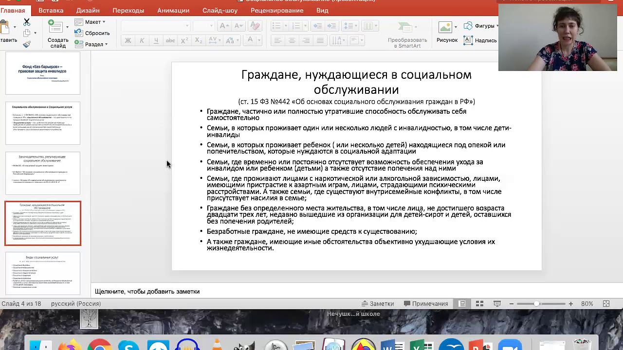 В видео будут разобраны следующие вопросы: - что такое социальное обслуживание; - какие законы регулируют социальное обслуживание в РФ; - какие формы и виды социального обслуживание существуют; - что включают в себя термины индивидуальная программа и социальный договор; - кому положено бесплатное оказание социальных услуг; - какие документы необходимо предоставить для получения услуг по соц обслуживанию. Вебинары подготовлены юристами Регионального общественного фонда правовой защиты и поддержки инвалидов "Без Барьеров" http://barrier-free.ru при поддержке Фонда Президентских грантов, Гранта Мэра Москвы и Дома общественных организаций г. Москвы