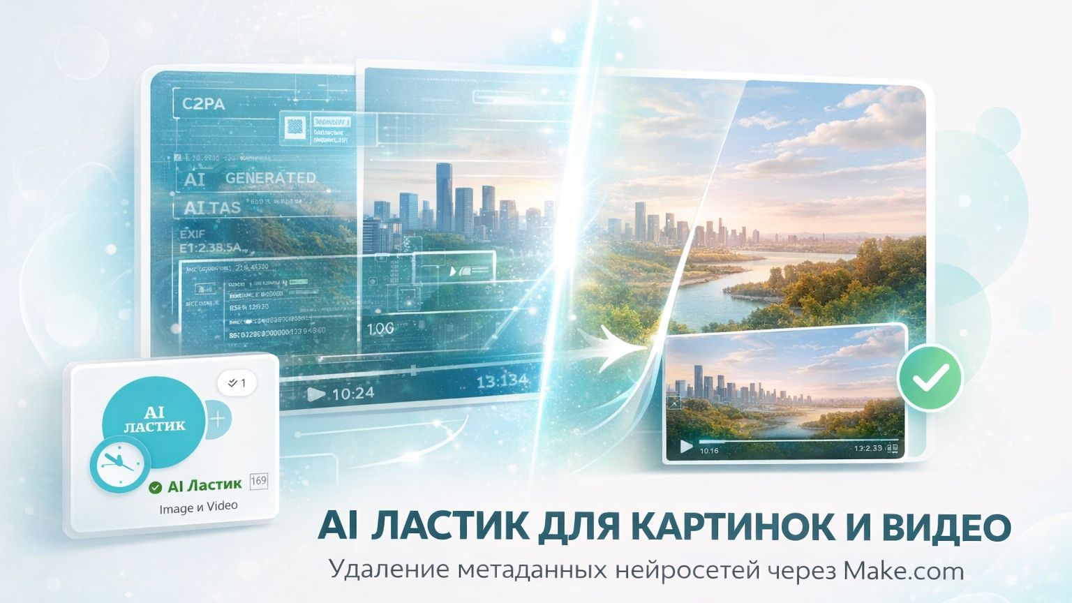 Удаление МЕТАДАННЫХ AI картинок или видео через Make.com