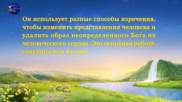 Всемогущий Бог говорит: «С одной стороны, воплощение Бога в последние дни удаляет образ неопределенного Бога из представлений людей, чтобы в сердцах людей больше не было образа неопределенного Бога. Посредством Своих фактических слов и фактической работы, Своих движений по всей земле и Своего исключительно реального и нормального труда, Он приводит человека к познанию реальности Бога, при этом удаляя место, занимаемое неопределенным Богом, из человеческого сердца. С другой стороны, Бог использует слова, произносимые Им во плоти, для того, чтобы сделать человека целостным и завершить все вещи. Это труд, который Бог совершит на протяжении последних дней». Восточная Молния. Церковь Всемогущего Бога возникла в связи с трудом, совершаемым возвратившимся Господом Иисусом Христом эпохи Последних дней, Всемогущим Богом, в Китае. Данная церковь не учреждена никаким лицом. Христос – это истина, путь и жизнь. После прочтения Слова Божьего вы убедитесь в явлении Бога. Электронная почта : contact.ru@kingdomsalvation.org вяжитесь с нами: ( Испания ) +34-603-342-565 ( США ) +1-917-238-3744 Специальное заявление: это видео было создано на некоммерческой основе Церковью Всемогущего Бога. Это видео не может передаваться третьей стороне в целях извлечения выгоды, и мы надеемся, что все будут делиться этим видео и распространять его открыто. При распространении этого видео, пожалуйста, указывайте источник. Без согласия Церкви Всемогущего Бога никакая организация, общественная группа или лицо не может искажать или представлять в ложном свете содержание этого видео. #Спаситель #мира #Бог #Библия #Христос #Истина #ВсемогущийБог #ЦерковьВсемогущегоБога #CвятойДух #Жизнь #Cпасение #God