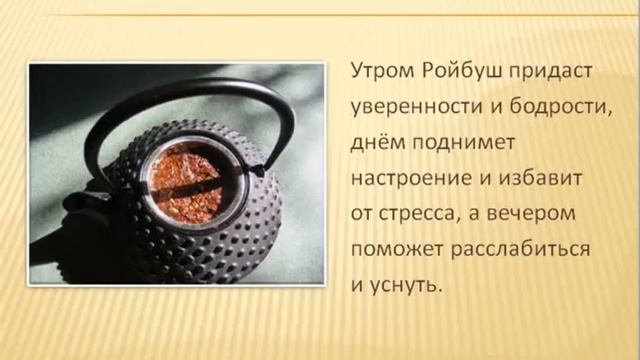 Чай Ройбуш | Краткий курс. История чая Ройбуш, полезные свойства чая Ройбуш, как и где производят чай Ройбуш, как правильно заваривать чай Ройбуш, как правильно хранить чай Ройбуш. Всё самое познавательное о чае Ройбуш всего за несколько минут! "ЧАЙНА ПАНДА" - клуб ценителей чайной философии и китайской культуры.В нашем клубе Вы можете пополнить свои знания о истории китайского чая,его разновидностях и способах приготовления.О китайской культуре,китайской истории и о Китае в целом. Официальный сайт - http://chp-online.nethouse.ru Чайный Магазин - http://kuplt-chay.nethouse.ru Группа в Одноклассниках - http://ok.ru/chinapanda Группа В Контакте - http://vk.com/public92796002
