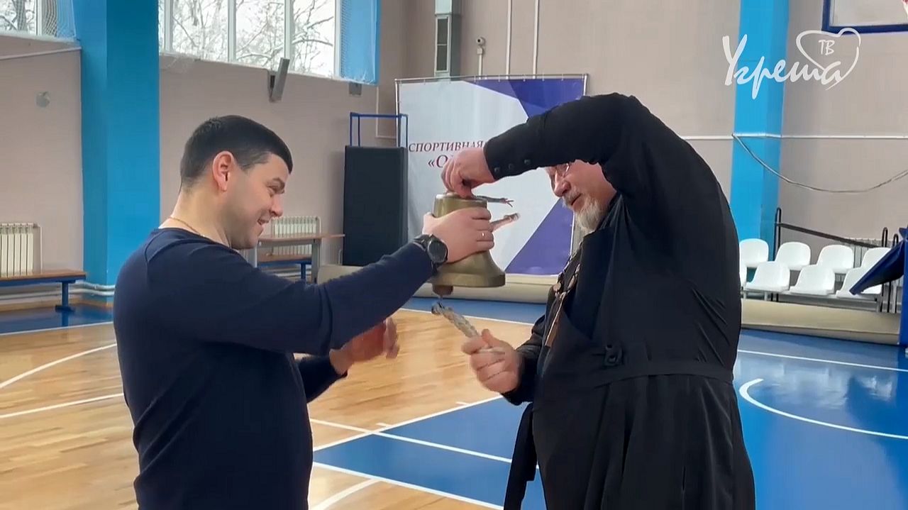 Настоящая рында, повидавшая штормы и ураганы, - такой новогодний подарок преподнес спортивной школе «Орбита» от приходской общины старший священник храма Дмитрия Донского иерей Игорь Маркевич.