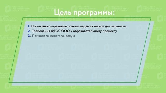 Совершенствование процесса преподавания истории согласно ФГОС ООО в условиях инклюзивного образования и введения профстандарта «Педагог». Аннотация к программе. Институт современного образования (ИСО) Об институте: Автономная некоммерческая организация дополнительного профессионального образования «Институт современного образования» Учредителем АНО ДПО «Институт современного образования» является АОНО ВО «Институт менеджмента, маркетинга и финансов» - это вуз, который более 30 лет занимается подготовкой востребованных кадров. 5 направлений деятельности АНО ДПО «Институт современного образования»: • Повышение квалификации, профессиональная переподготовка и профессиональное обучение для работников сферы образования. • Повышение квалификации и профессиональная переподготовка в сфере менеджмента, управления персоналом, бухгалтерского учёта, контрактных закупок, охраны труда, обеспечения безопасности, сервиса и оказания услуг населению и ещё более 30 направлений. • Курсы английского языка и программирования для взрослых и детей. • Корпоративные курсы и тренинги по направлениям подготовки. • Индивидуальные учебные программы под потребности организаций или обучающегося. Ключевые преимущества для наших слушателей: • Гарантия качества знаний • Удобно • Финансово выгодно Наша задача – чтобы каждый желающий получил качественное образование по приемлемым ценам. Контакты: Сайт: www.isoedu.ru ВК: https://vk.com/isoedu E-mail: dpo@doiso.ru, info@isoedu.ru По вопросам обучения (сроки обучения, проверка работ, выдача документов) обращайтесь по телефонам: +7 (910) 240-21-37, (910) 732-86-78.