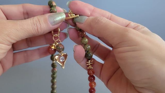 Колье из сердолика, унакита с подвеской сердце