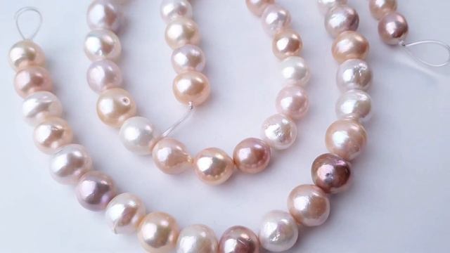 На видео представлены две нити натурального жемчуга касуми (жемчужины диаметром 12-16 мм)