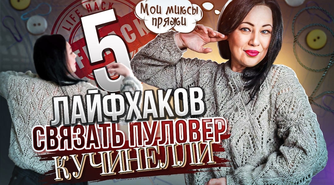 ВязаниеКак увеличить/уменьшить размер пуловера | Микс пряжи с пайетками для пулов спицами Кучинелли