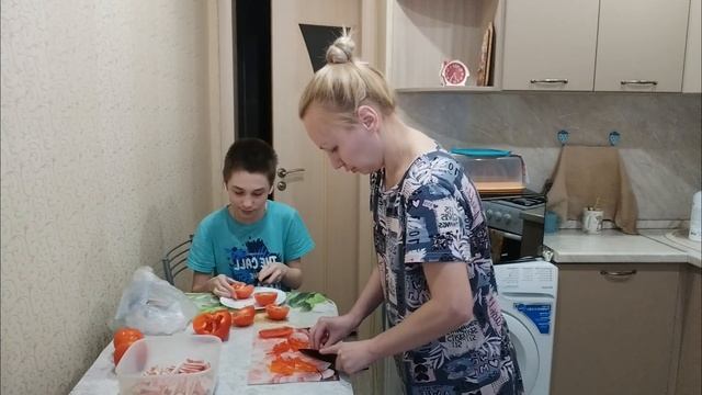 Салат с курочкой и болгарским красным перцем на ужин 😋 Торт из шоколадных оладушек на десерт 🥞