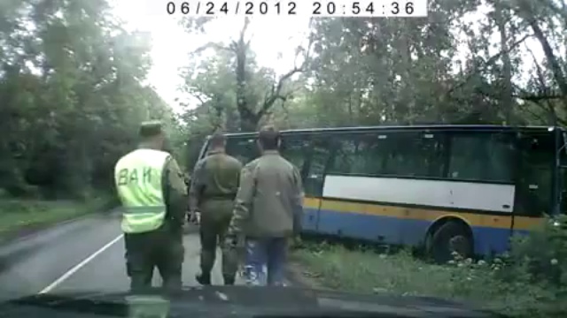 БТР вытолкал автобус на встречный Mercedes...