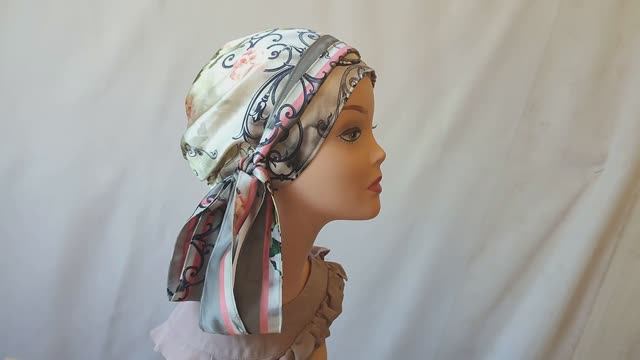 Демонстрация головного убора на манекене Заказ на сайте производителя https://shapki-aya.ru/products/tiurban-s-lyamkami-i-drapirovkoi-shelk-111288-1