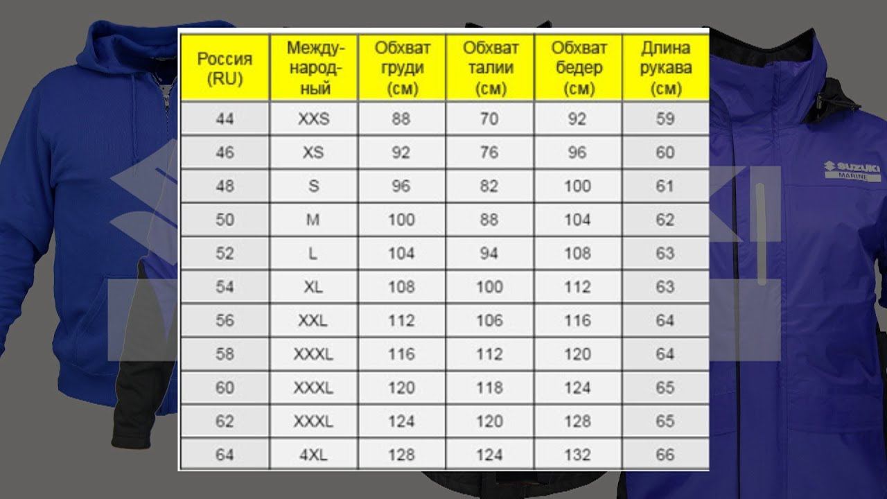 Размеры фирменной одежды SUZUKI MARINE