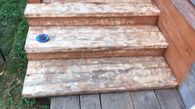Очистка крыльца от старой краски в загородном доме кругами коралл