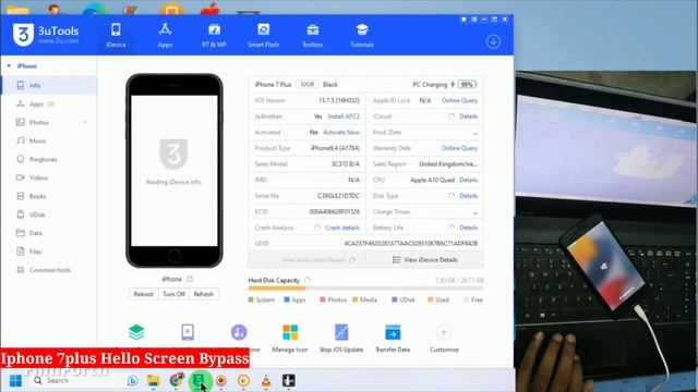 Iphone 7/7 plus Hello Screen bypass done by unlock tool after Jailbreak New method | 2023 |
