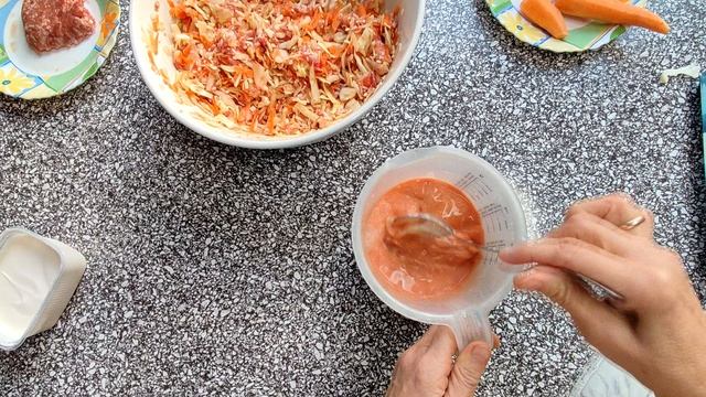 На 2 большие порции: капуста 300 г., рис 50 г, фарш 200-250 г, 1 средняя морковь, 1 небольшая луковица, соль, перец по вкусу. Для заливки 250 мл. воды, 50 г томатной пасты, 1 ст. л. сметаны, соль.
