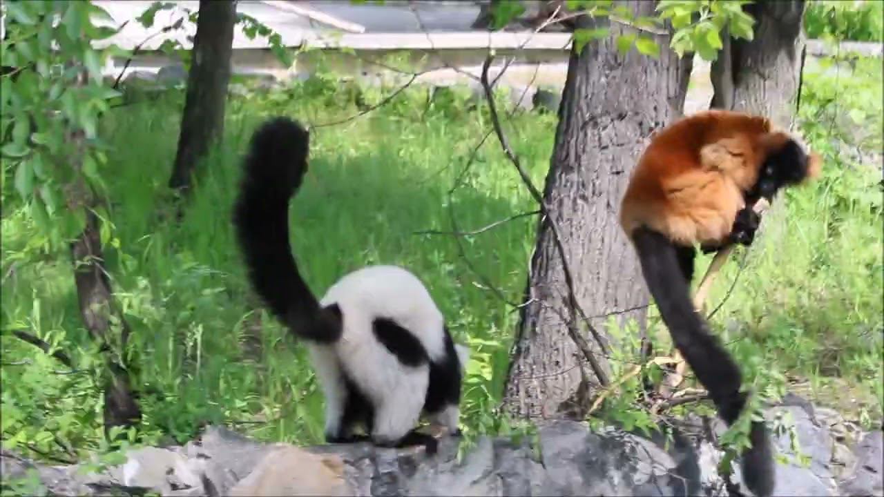 Красный и чёрно-белый вари гуляют на островке 13.06.2024