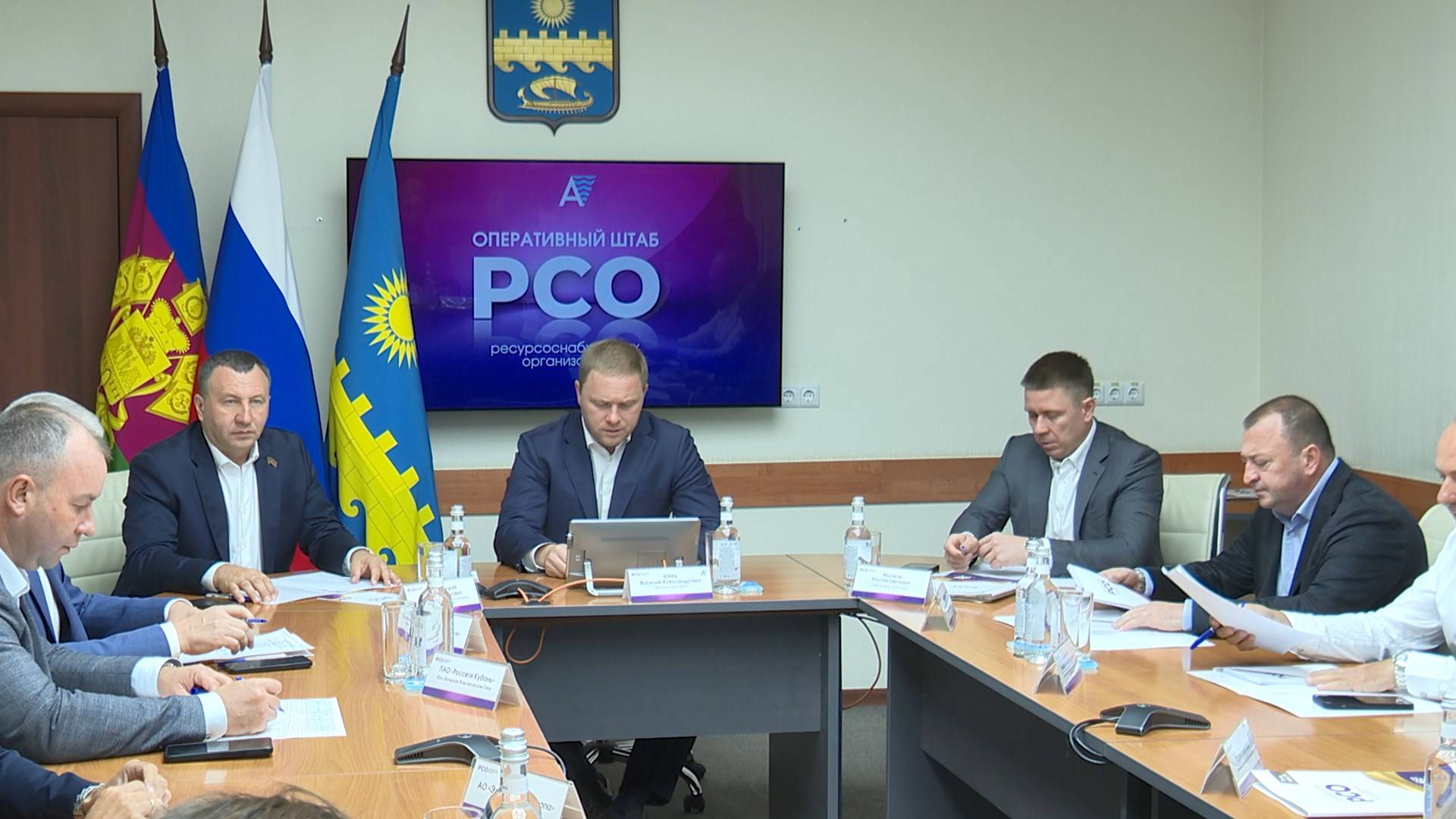 Совещание провёл мэр Анапы Василий Швец. В работе приняли участие председатель Совета Леонид Красноруцкий, руководители ресурсоснабжающих организаций и управляющих компаний, главы сельских округов.