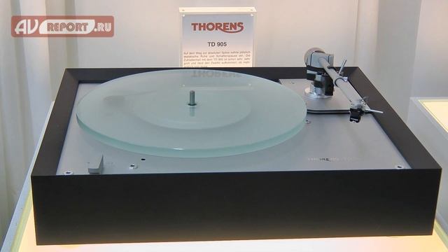 На выставке High-End Show, которая прошла в Мюнхене в начале мая 2016, компания Thorens представила 3 новых модели проигрывателей виниловых дисков – TD 903, TD 905 и TD 907. Эти проигрыватели имеют традиционную для Thorens конструкцию с использованием субшасси. Появление этих моделей в продаже ожидается в июле 2016. Самая «младшая» модель новой 900-й линейки Thorens – TD 903 – оснащается субшасси для эффективной защиты от вибраций и стеклянным опорным диском. Данная модель комплектуется тонармом Thorens TP 92. Корпус проигрывателя может иметь следующие варианты отделки: черный, белый, натуральное дерево. Более «старшая» модель TD 905 имеет несколько усовершенствований по сравнению c 903-й моделью. Кстати, компания выпускает специальные наборы для апгрейда проигрывателей, которые позволяют улучшить модель TD 903 до TD 905, а TD 905 соответственно до TD 907. Топовая модель в 900-й серии компании Thorens также оснащается специальным субшасси. За счет изменения давления воздуха в системе подвеса можно изменять его резонансную частоту. Опорный диск проигрывателя изготовлен из алюминия путем алмазной обработки. Центральная часть опорного диска изготовлена из полиоксиметилена (POM), обладающего отличными демпфирующими свойствами. Проигрыватель Thorens TD 905 комплектуется фирменным тонармом TP 92.