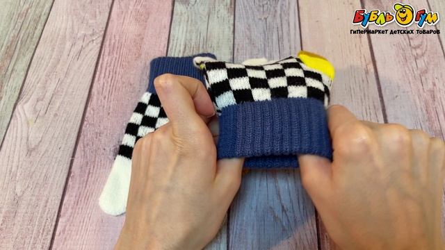 331491 Перчатки Lanson Kids трикотажные с цветными акцентами и принтом шахматная клетка черно-белые
